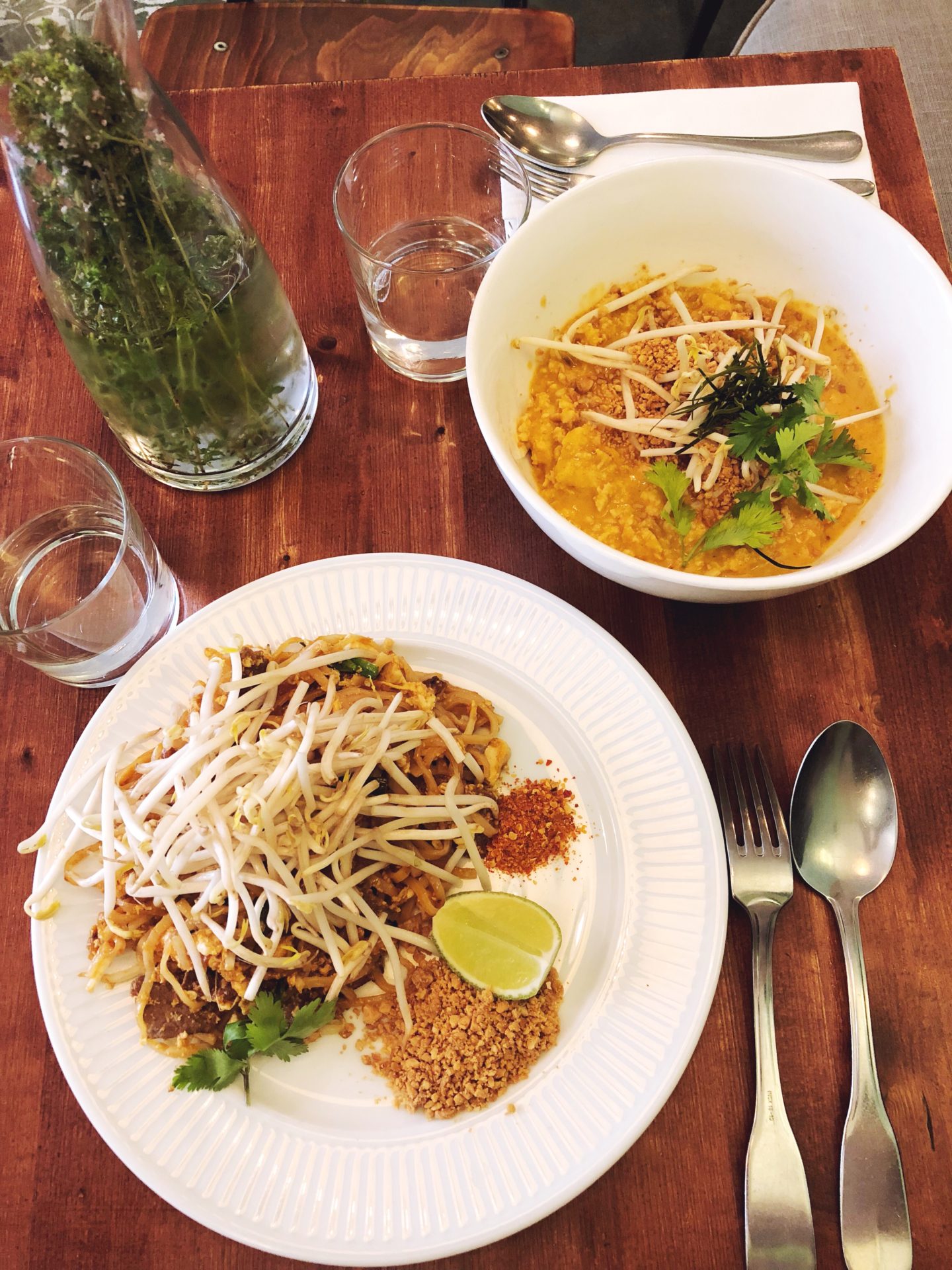 Deux plats avec des portions généreuses, tellement généreuses qu’on a même eu du mal à finir ! Le Pad Thaï était délicieux, même si je ne me suis pas trop risquée à mettre du piment dedans car ce dernier était très intense !