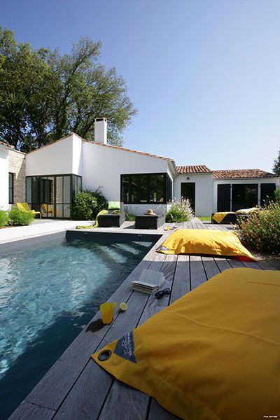 Vers La Rochelle, sur l’île de Ré, on trouve de nombreuses maisons canons avec des petites piscines parfaites pour chiller ! Un bon cocktail, un livre et quelques amis : voici la recette parfaite pour cet été !