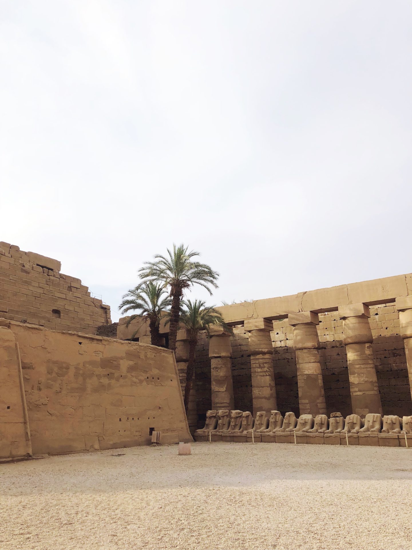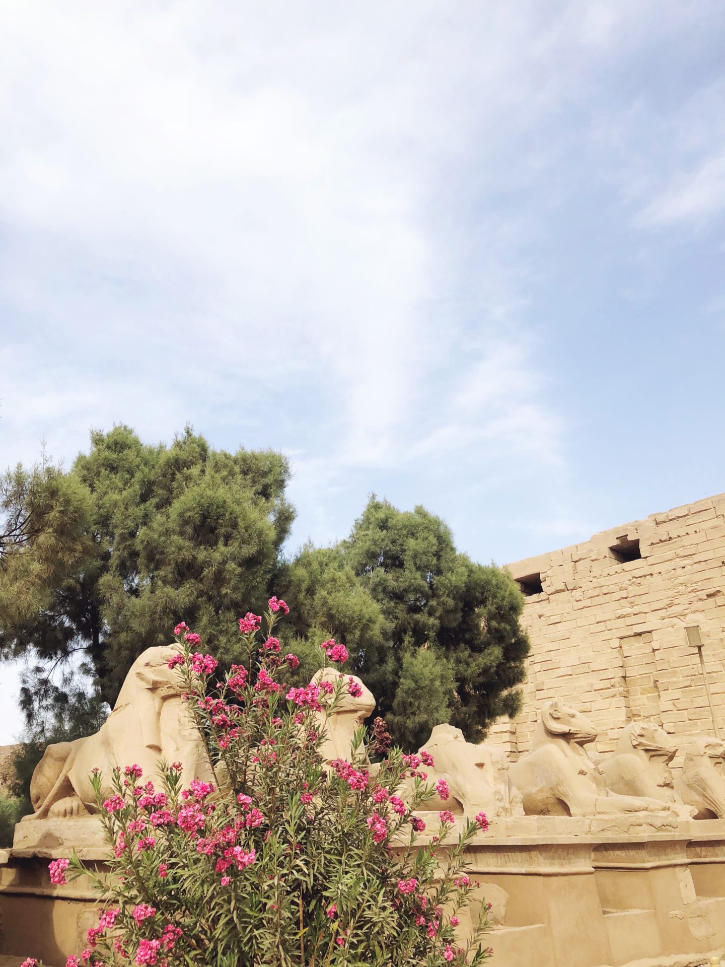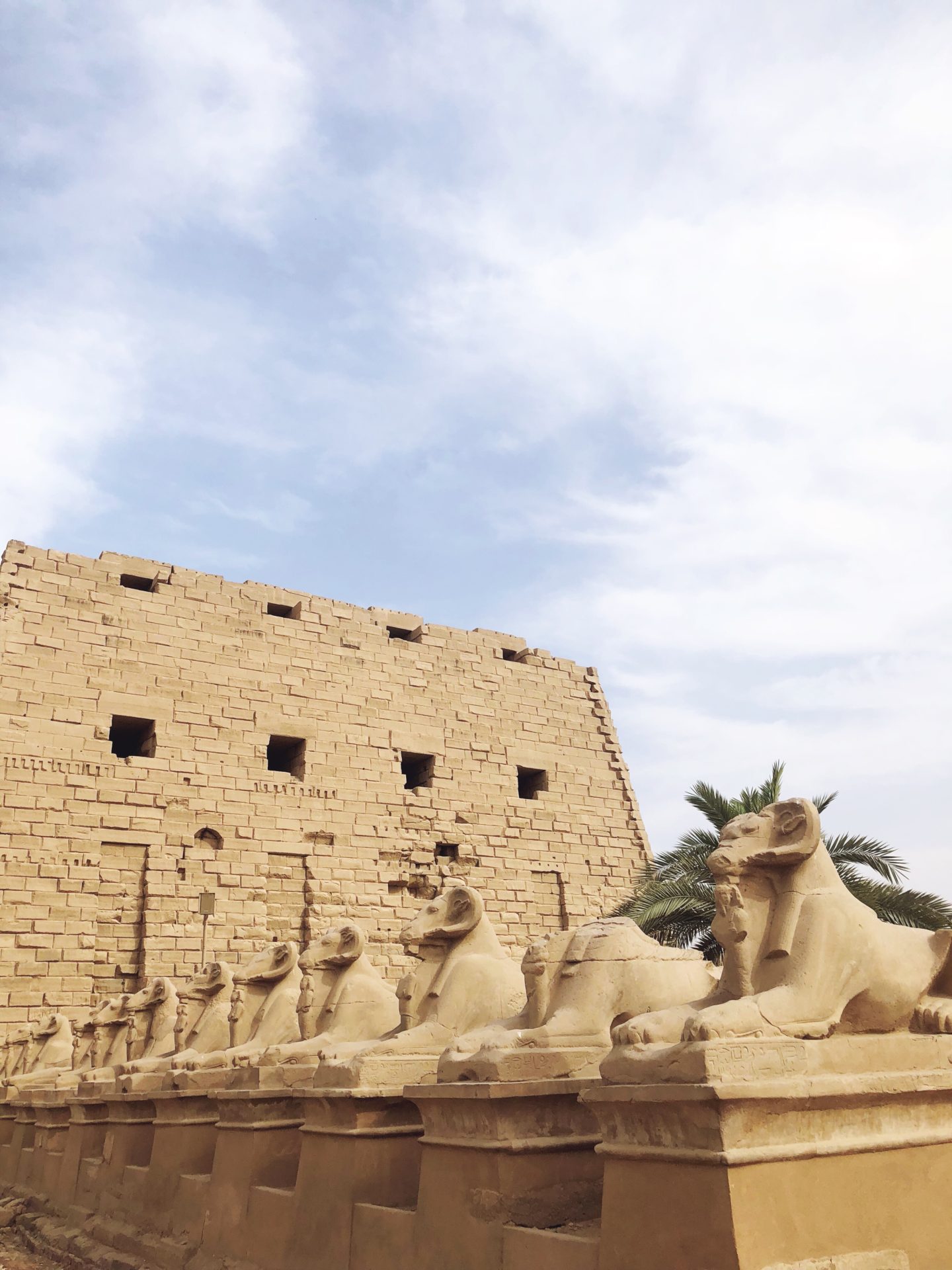 On peut d’ailleurs apercevoir quelques-uns de ces sphinx à tête de bélier en entrant dans le temple de Karnak, et même s’ils sont bien plus petit que le Sphinx du plateau de Gizeh, ils n’en restent pas moins impressionnants.