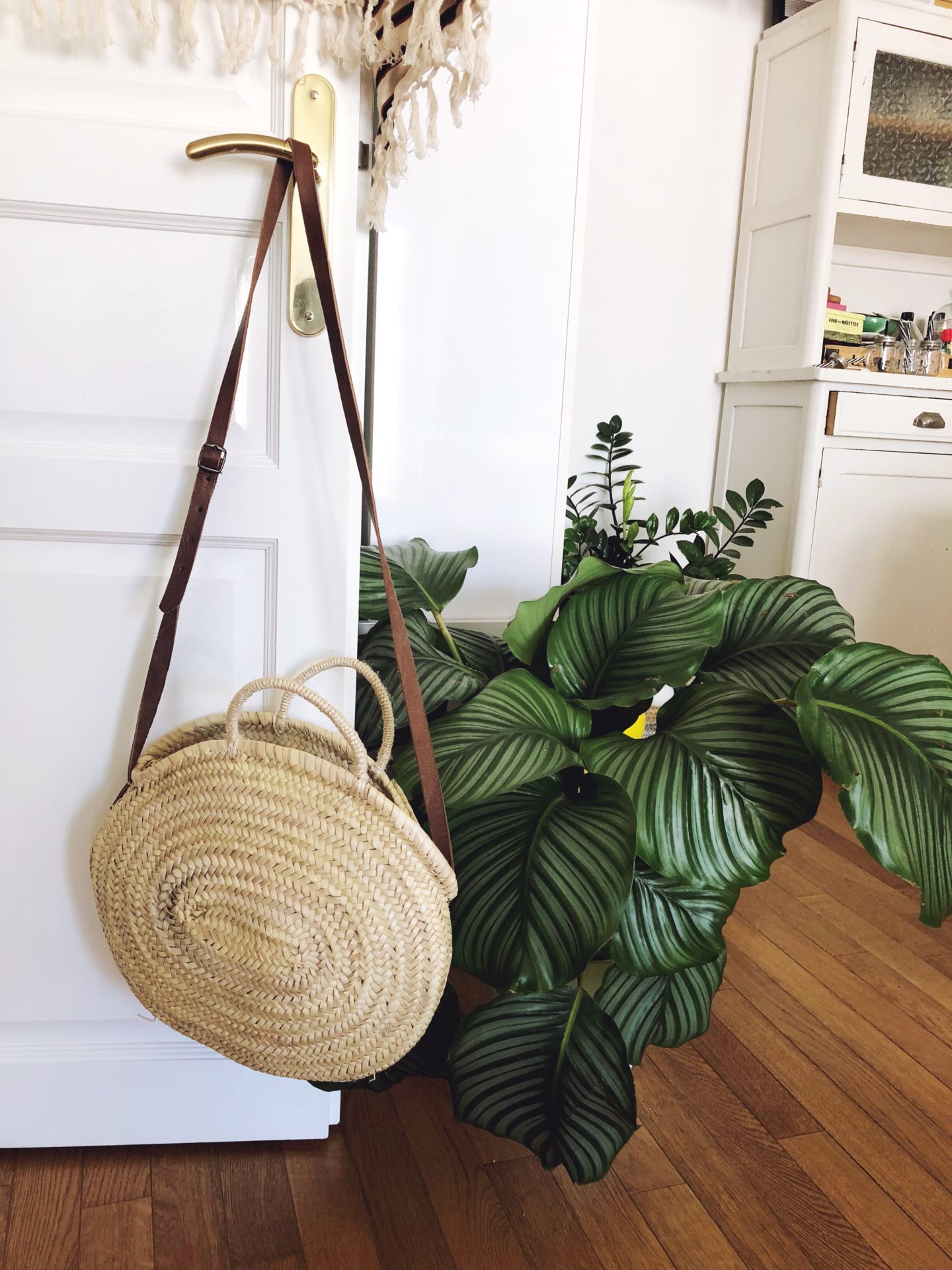 J’ai chiné tous mes paniers, certains sont vintage et j’ai même déniché le fameux panier rond à anses en cuir pour 1€