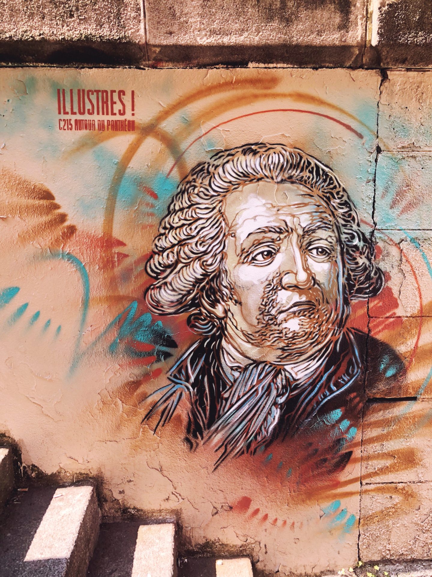 C’est dans le cadre de la saison culturelle « Sur les murs, histoire(s) de graffiti » du Centre des Monuments Nationaux, que C215 a été chargé de créer de parcours autour du Panthéon. Résultat ? Pas moins de 28 personnalités illustres parmi lesquelles Marie Curie, Victor Hugo ou bien encore Bougainville.