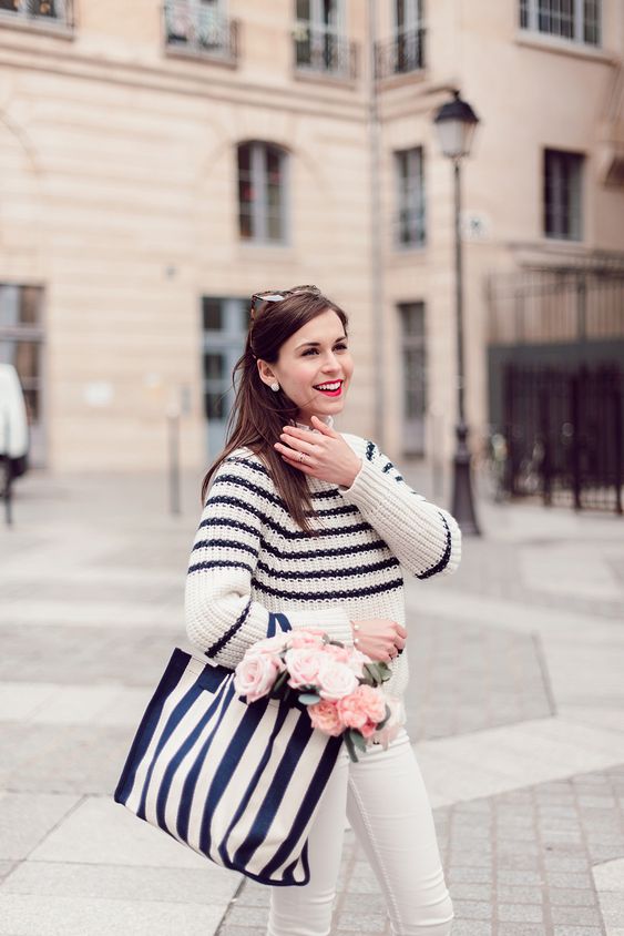 Pour aller avec ce joli parapluie, rien de tel qu’un look citadin chic. Un joli trench, un jean slim ou une jupe en similicuir avec un gros pull, des bottines ou des babies aux pieds et vous voilà prêtes pour aller au bureau !