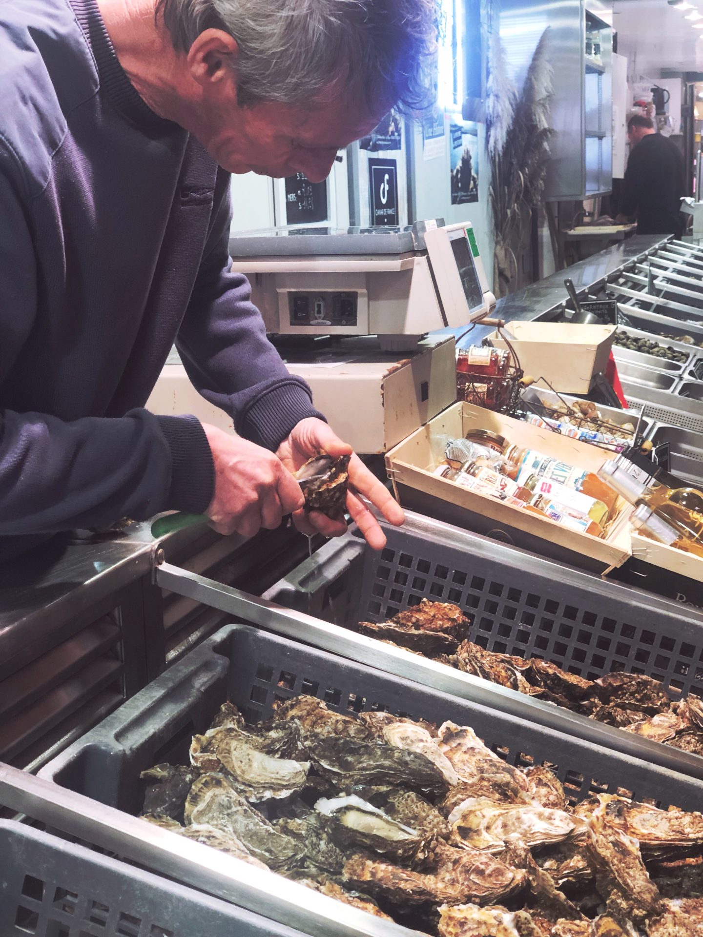 Amateurs d’huitres, c’est l’étal parfait pour vous ! Direction le fond des Halles et une rencontre avec Didier des huîtres Roumégous. C’est une famille d’ostréiculteurs depuis 1891, soit 7 générations.