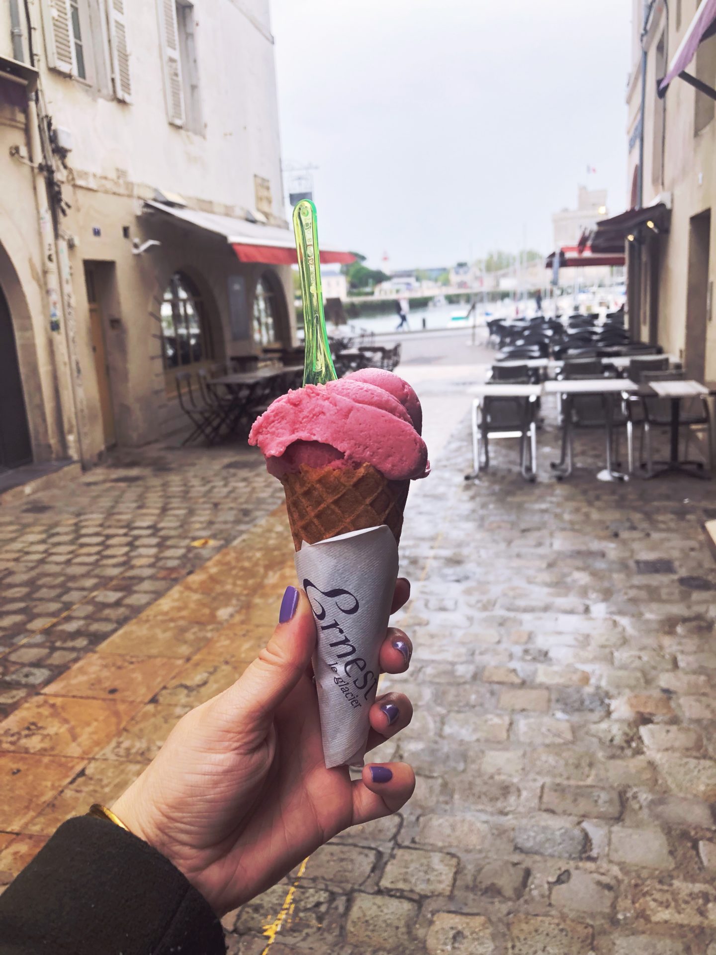 Le passage obligé à La Rochelle. Pas une grande découverte pour moi pendant ce parcours, puisque je suis littéralement accro à Ernest. J’y vais régulièrement me prendre une petite glace, qu’il fasse beau ou moche.