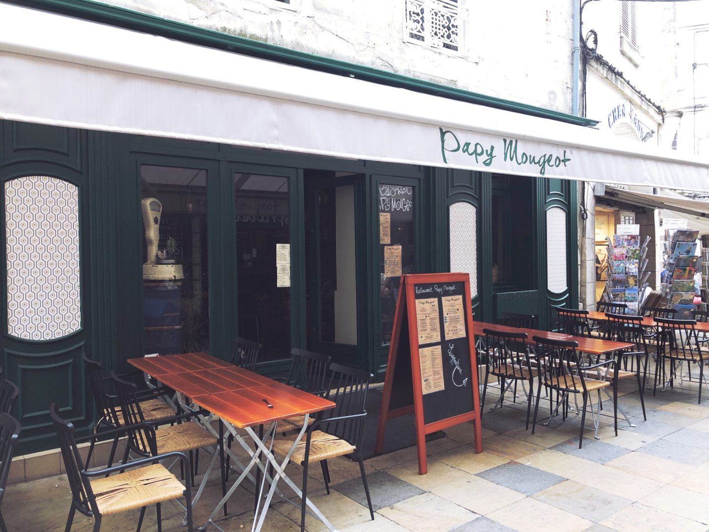 Le restaurant Papy Mougeot de La Rochelle se situe rue Bletterie, à deux pas du Vieux Port. C’est le second établissement du nom : le premier se trouve à Nantes.