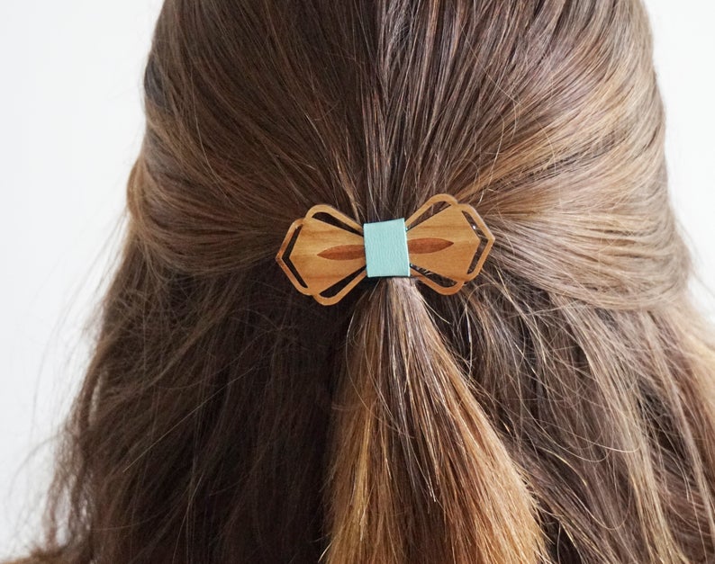 Barrette noeud en cuir et bois – Studio Martho (20€)