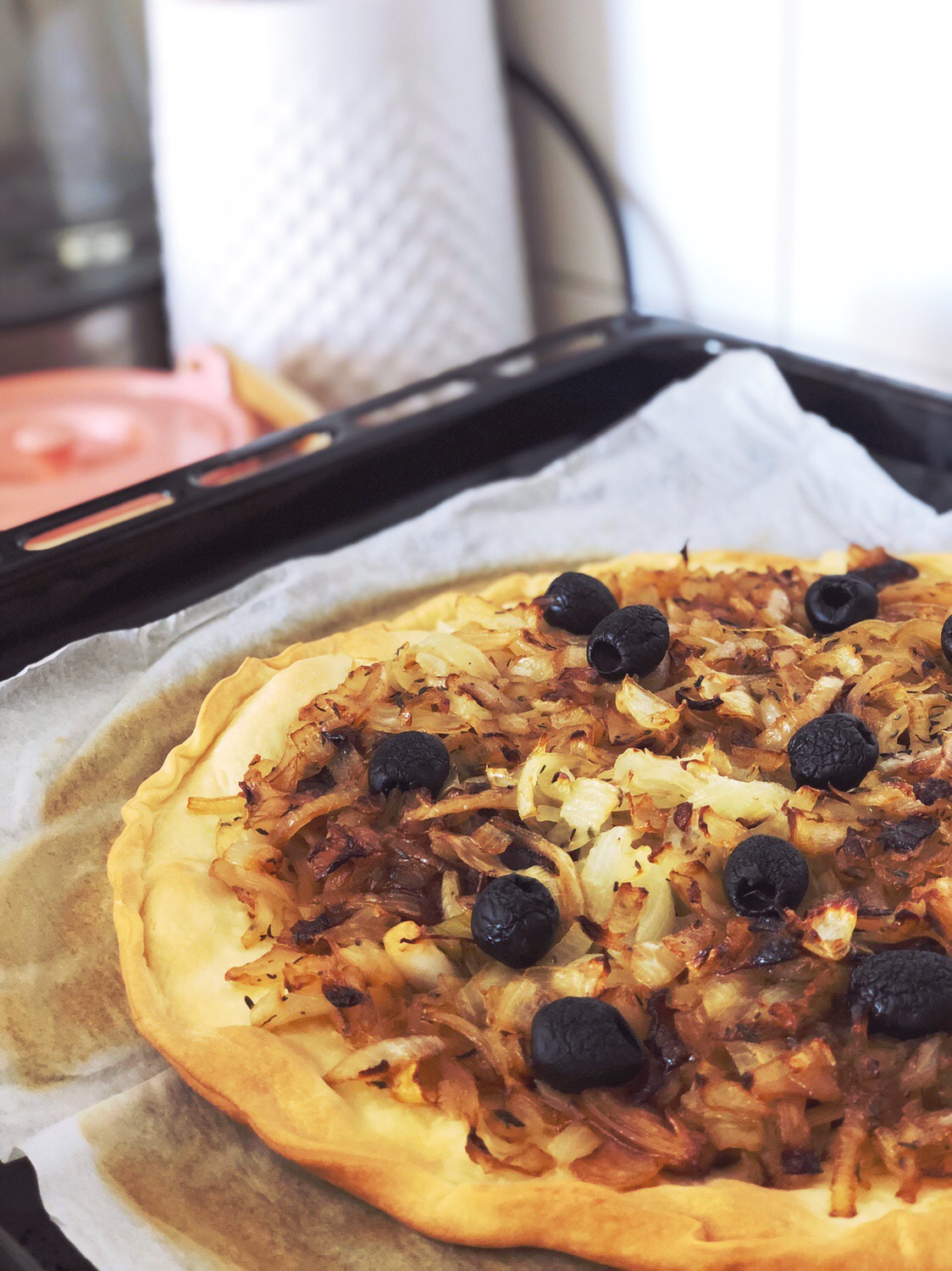 Le midi, je me cuisine pour la première une pissaladière. Eplucher et couper les oignons est une telle torture (j’ai pleuré autant que devant un épisode de Grey’s Anatomy), que je suis à deux doigts d’acheter un sachet d’oignons découpés chez Picard pour la prochaine fois.