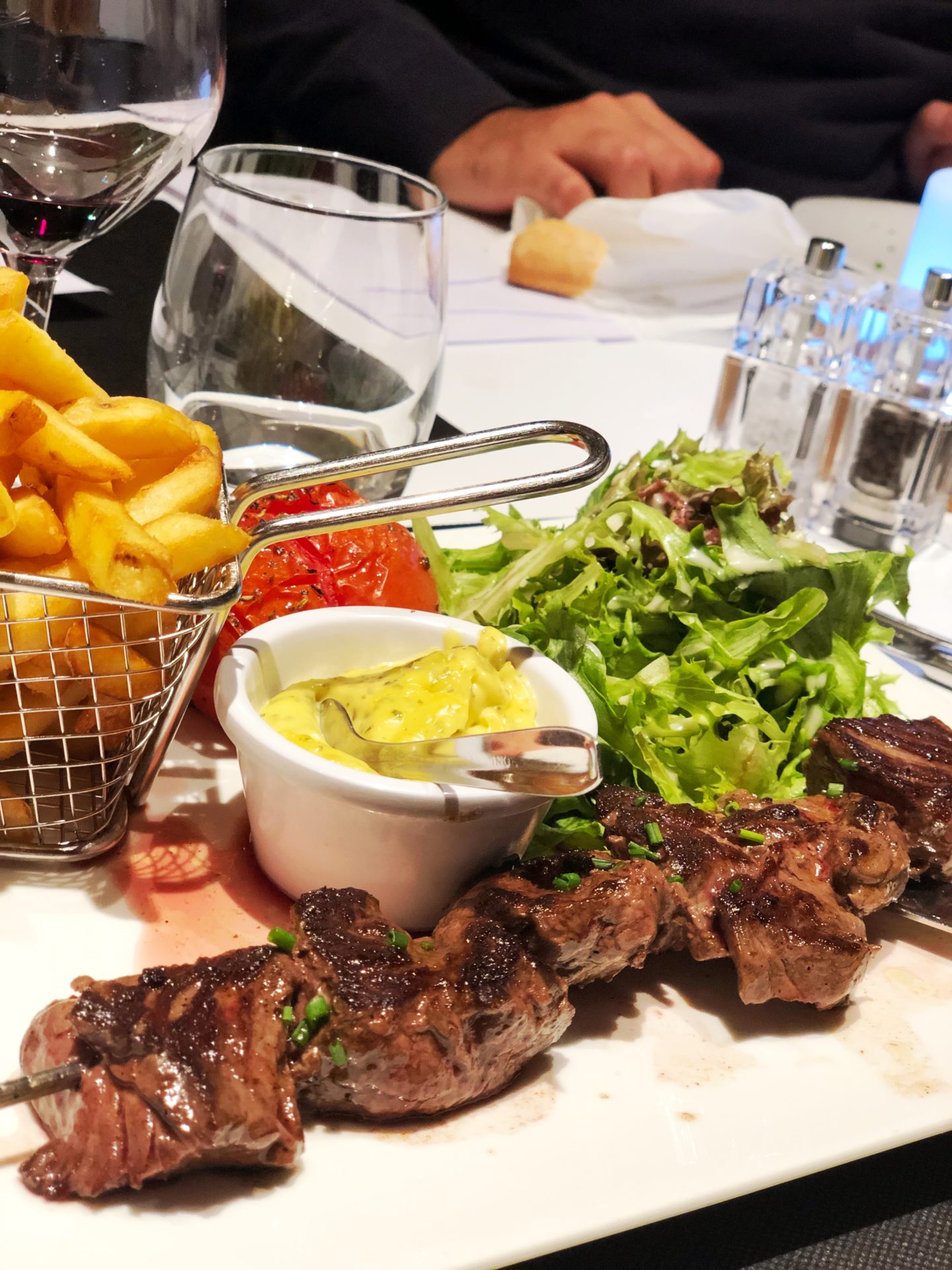 Le soir, on fête l’anniversaire de ma meilleure amie au casino Barrière de La Rochelle ! On se régale avec le buffet d’entrée et de dessert à volonté. En guise de plat, je prends une brochette d’onglet sauce béarnaise. Un régal, même si comme d’habitude je ne termine pas les frites !