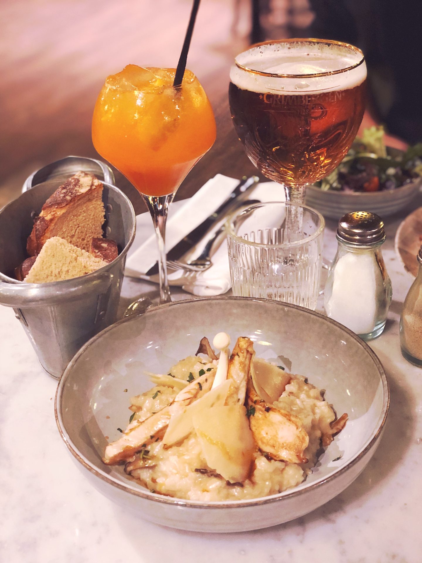 Le soir, nous sommes invités au restaurant de l’hôtel : le Génie sous les étoiles. J’opte pour un spritz à la mangue, avec un délicieux risotto au poulet et champignons. En dessert, on se partage une pâtisserie au sablé breton et citron : un régal. Mais je vous en reparlerai en détail très vite ! ;)