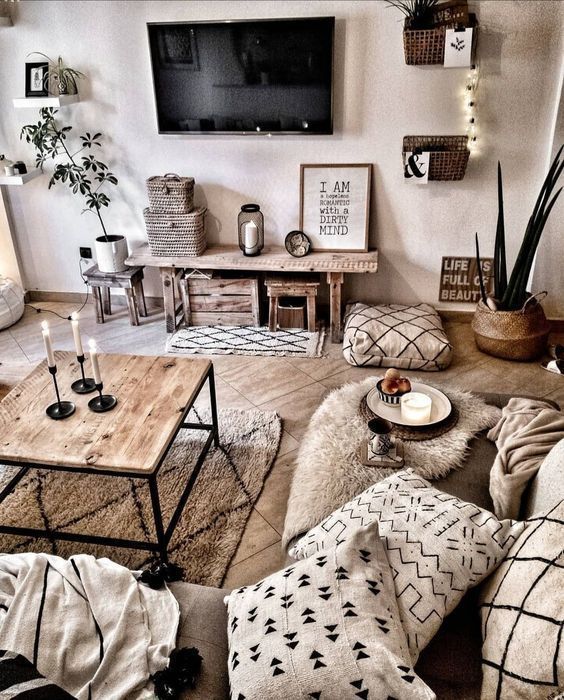 Dans les intérieurs de style boho, la peau de mouton est souvent utilisée pour apporter une touche cocooning au canapé. Posée négligemment sur le dossier ou un bout de canapé, elle s’associe parfaitement avec des coussins ou des plaids en coton, aux imprimés ethniques.