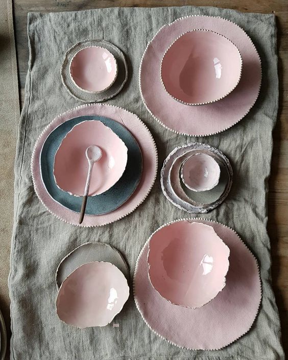 A table, c’est la céramique qui prime, avec des bols, des assiettes ou bien encore des plats aux bordures irrégulières. C’est ce qui lui donne tout son charme.