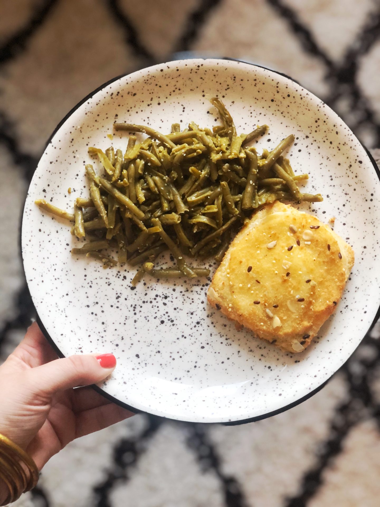 Je continue de travailler tout l’après-midi, et le soir je prépare un repas de la flemme 100% veggie : des panés veggie Picard & des haricots verts.