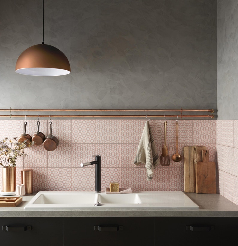 Dans ce cas là, le rose pastel est moins girly et plus rétro. L’association avec le cuivre fonctionne à merveille.