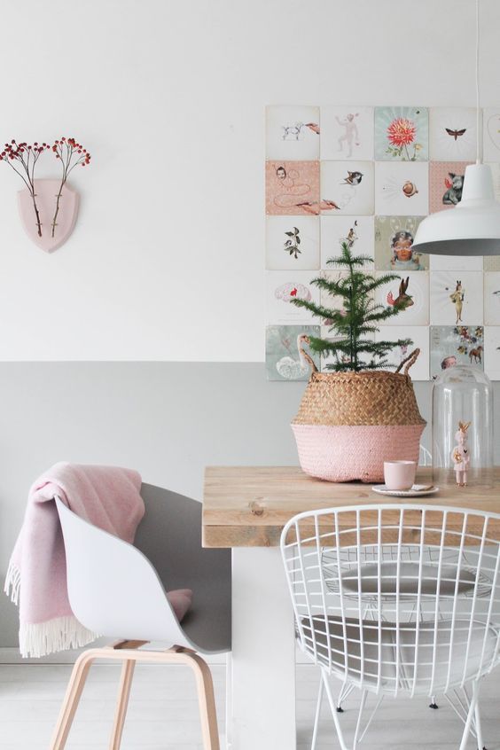 Utilisez des objets de déco comme des paniers, des plaids, de la déco murale pour incorporer des touches de pastel dans votre intérieur. Tout en douceur.