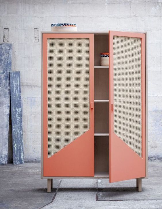 Le cannage peut également être plus léger pour créer une sorte de toile tissée. Elle donne un rendu assez intéressant pour recouvrir un meuble de dressing par exemple, laissant entrevoir son contenu.