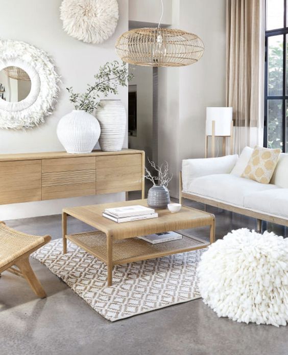 Déclinaison de la déco boho, la déco naturelle met en avant les matières naturelles comme les fibres végétales. Dont fait partie le rotin, avec lequel on fabrique le cannage. Vous pouvez donc en abuser sur votre mobilier ou vos objets de déco (luminaires inclus) si vous craquez pour le cannage et ce style d’ambiance !