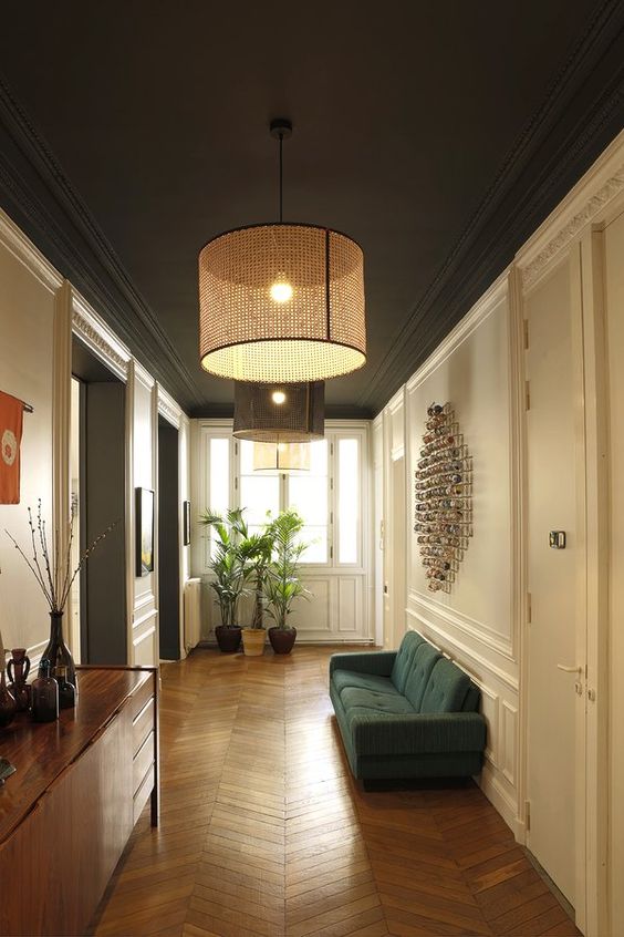 Dans une entrée, le salon ou la chambre à coucher, la suspension en cannage est une bonne solution pour avoir à la fois une lumière tamisée et un luminaire design. Les formes du cannage produiront également de jolies ombres aux murs et au plafond…