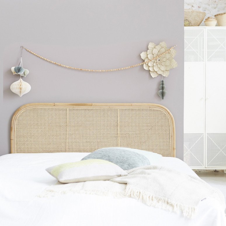 Bonjour, j’ai mis le lien sous la photo correspondante :) mais je pense qu’il s’agit d’une tête de lit fabriquée avec des ronds en cannage (que l’on peut trouver en magasin de loisirs créatifs)