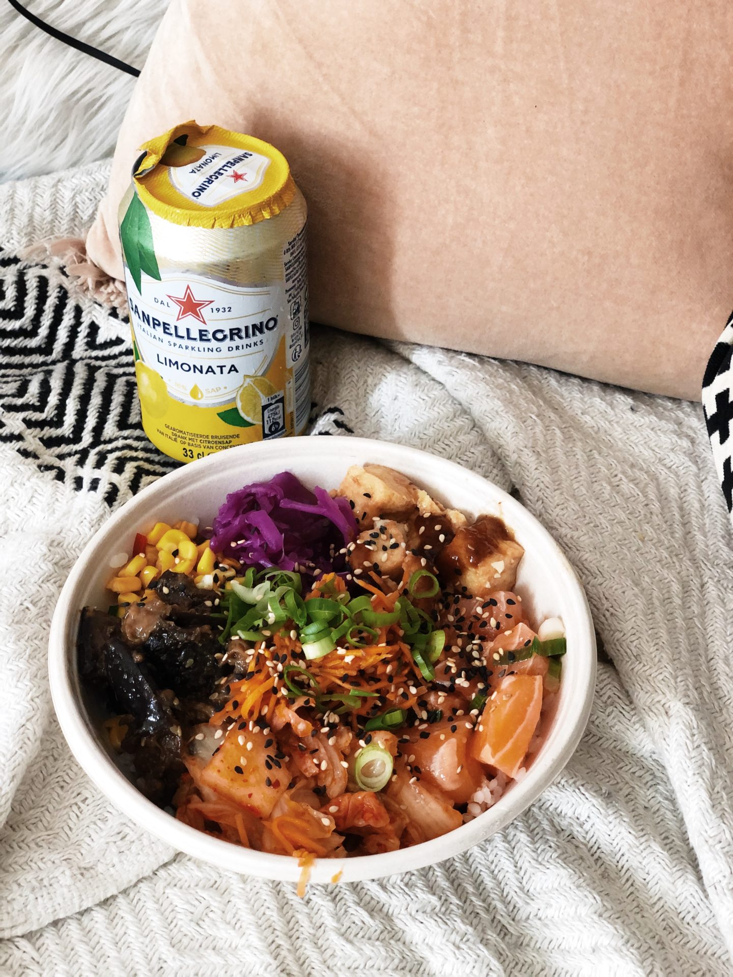 Ca me cale bien jusqu’à l’heure du déjeuner. Je sors vite fait acheter un pokebowl chez Island Poké. Je le prends au tofu et saumon, avec des légumes et du riz à sushis.