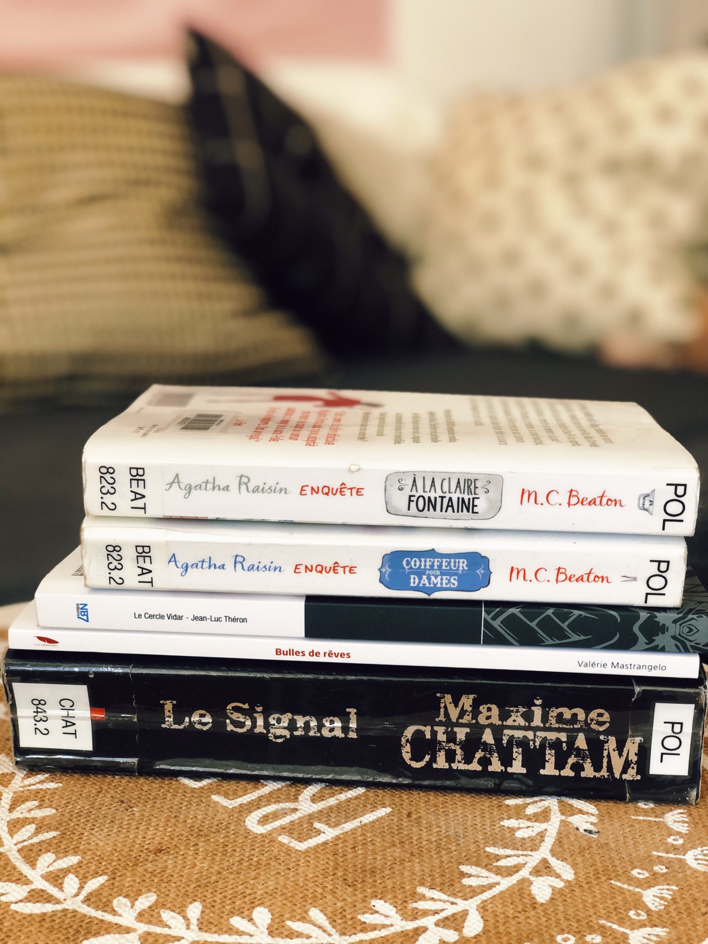 Depuis que j’ai commencé le tome 1 des aventures d’Agatha Raisin, je ne peux plus m’arrêter! J’en suis au tome 12! Et je te comprends pour la place à la maison. Mais comme j’ai commencé à les acheter, je continue la collection. La place va bientôt me manquer! ;-)