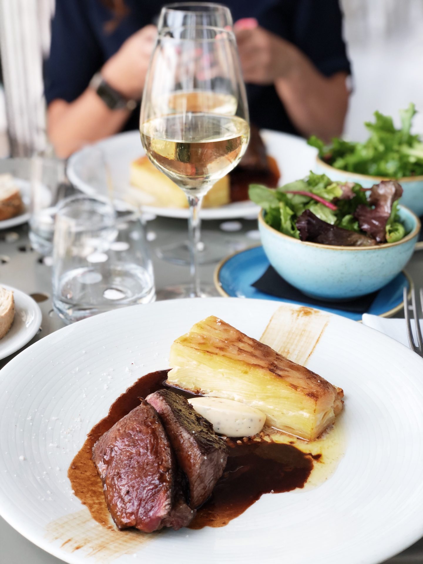 Ici, le chef propose une carte rythmée par les saisons, à base de produits régionaux. Nous avons opté pour un plat et un dessert, précédé d’amuse-bouches et accompagnés évidemment d’un délicieux verre de vin.