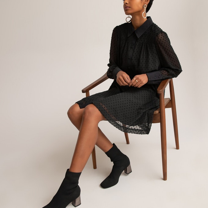 C’est un grand classique des garde-robes : la petite robe noire ! En version plumetis, elle a un côté rock et chic à la fois. A porter au bureau comme pour sortir entre amis !