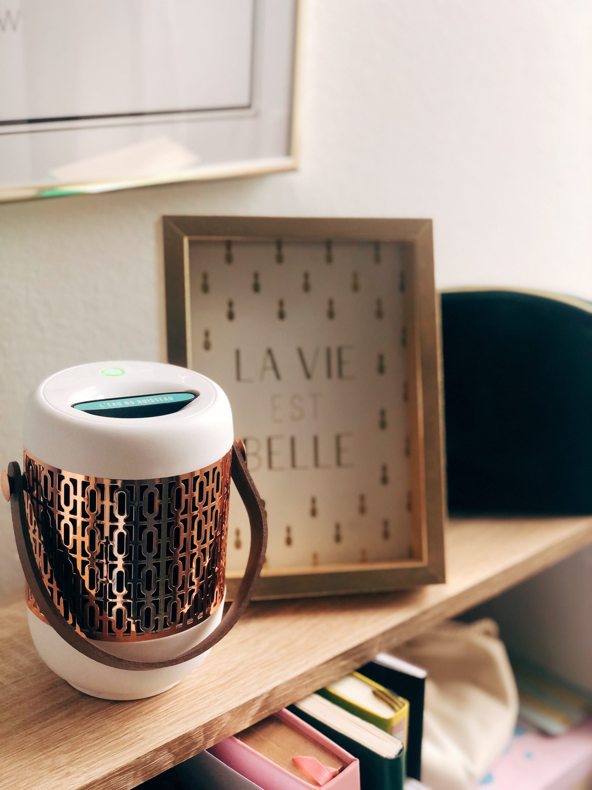 Pour ma part, je suis complètement séduite par ce diffuseur. Sa petite taille – il mesure 14cm de hauteur – me permet aussi bien de le placer sur mon coin bureau, que dans mon salon ou dans ma salle de bains.