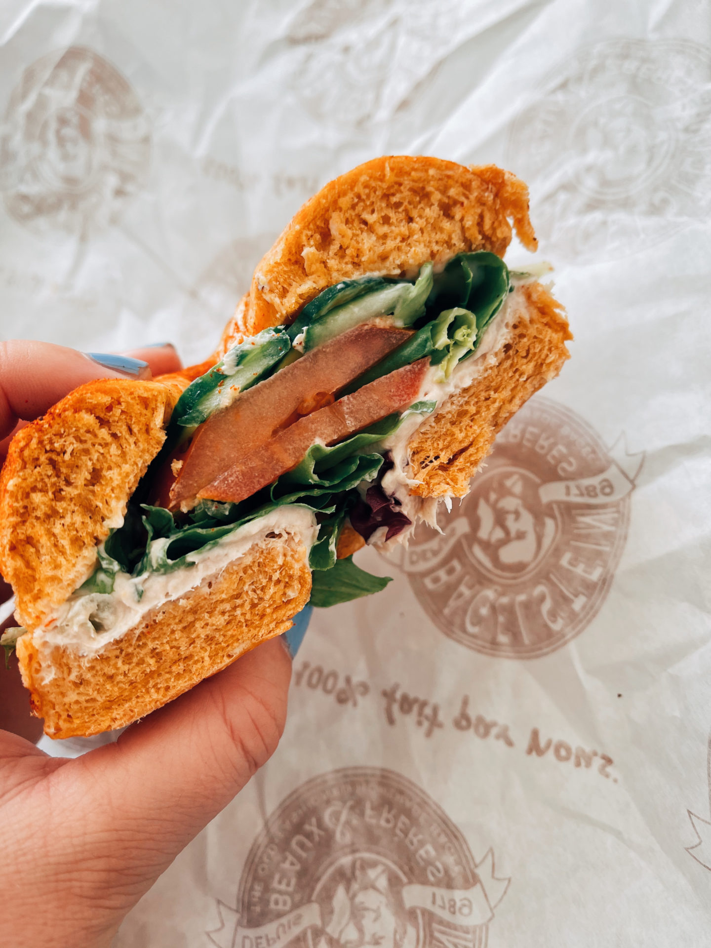 - Bagel au thon, cream cheese, tomates et concombre (midi)