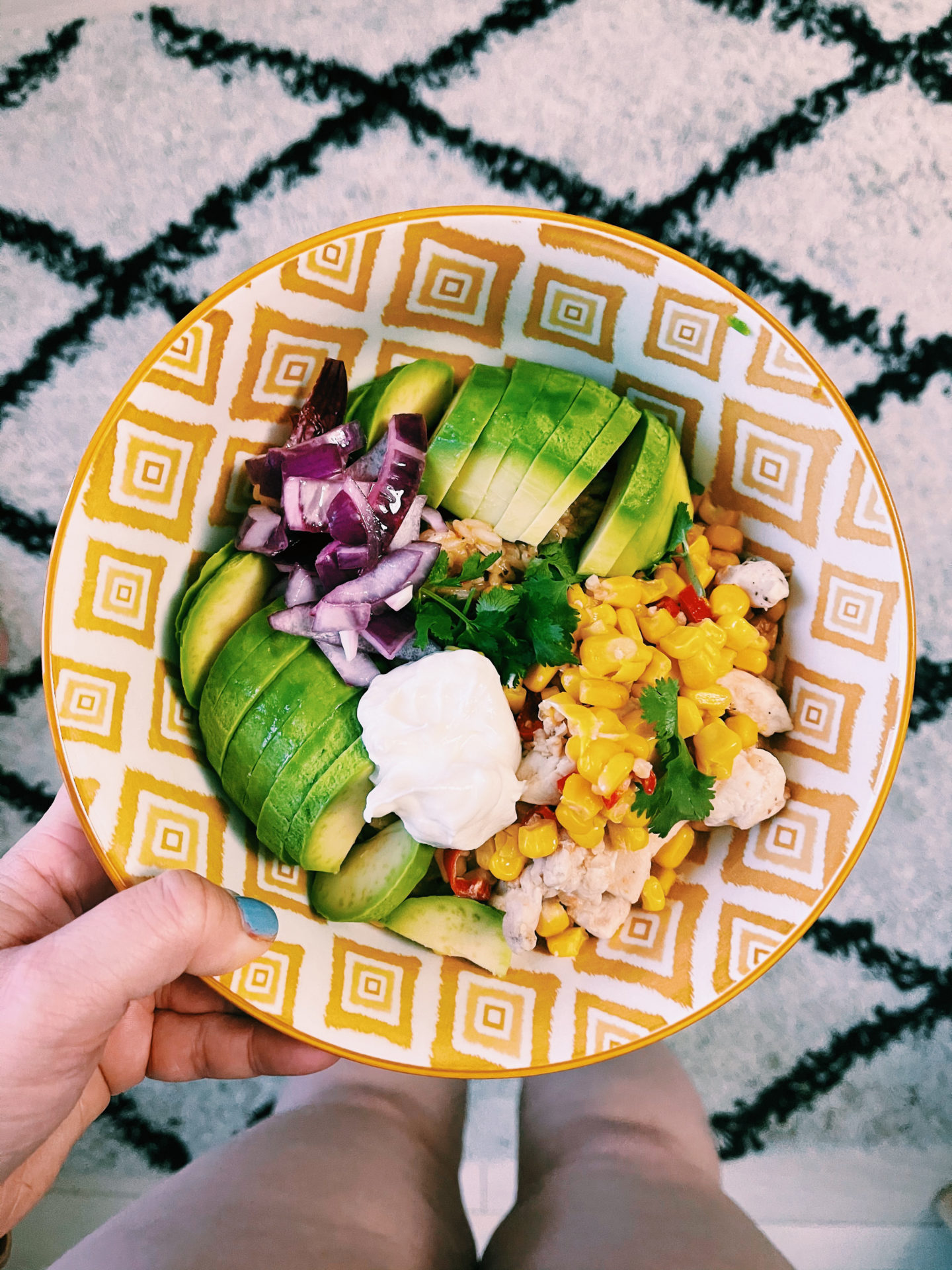 - Burrito Bowl au poulet à la mexicaine (soir)
