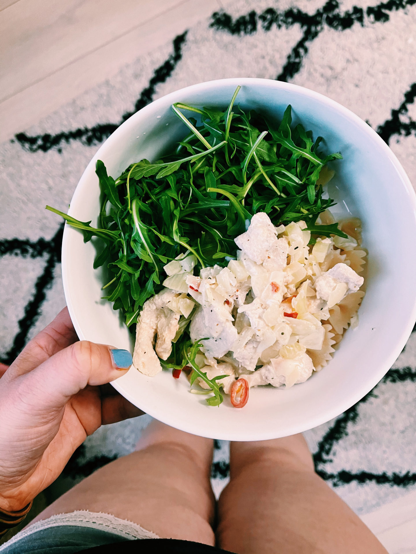 - Farfalles crémeuses au poulet et tomme râpée (soir)