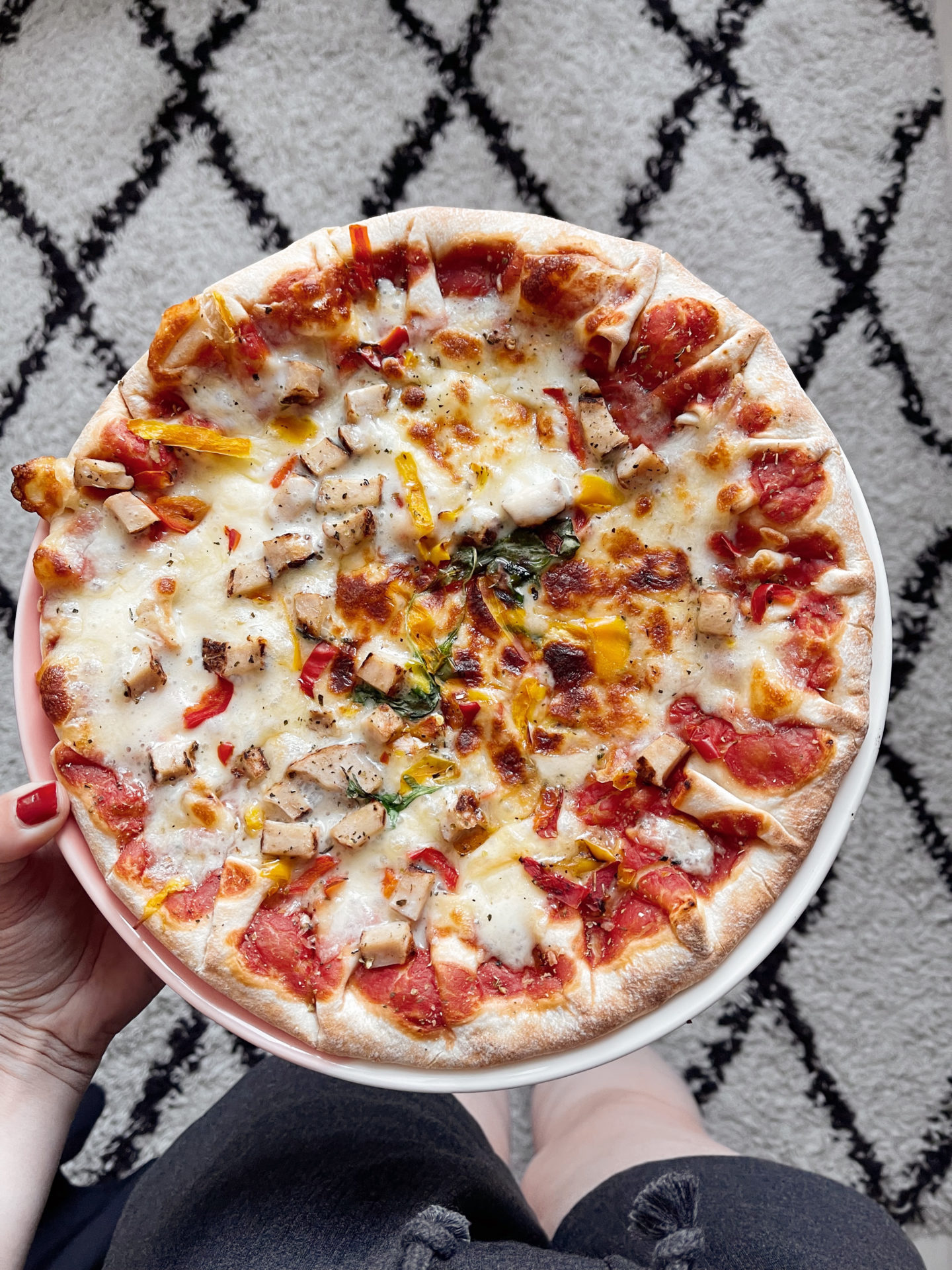 - Pizza Sodebo mozza, poulet, poivrons et crème de mozza (soir)