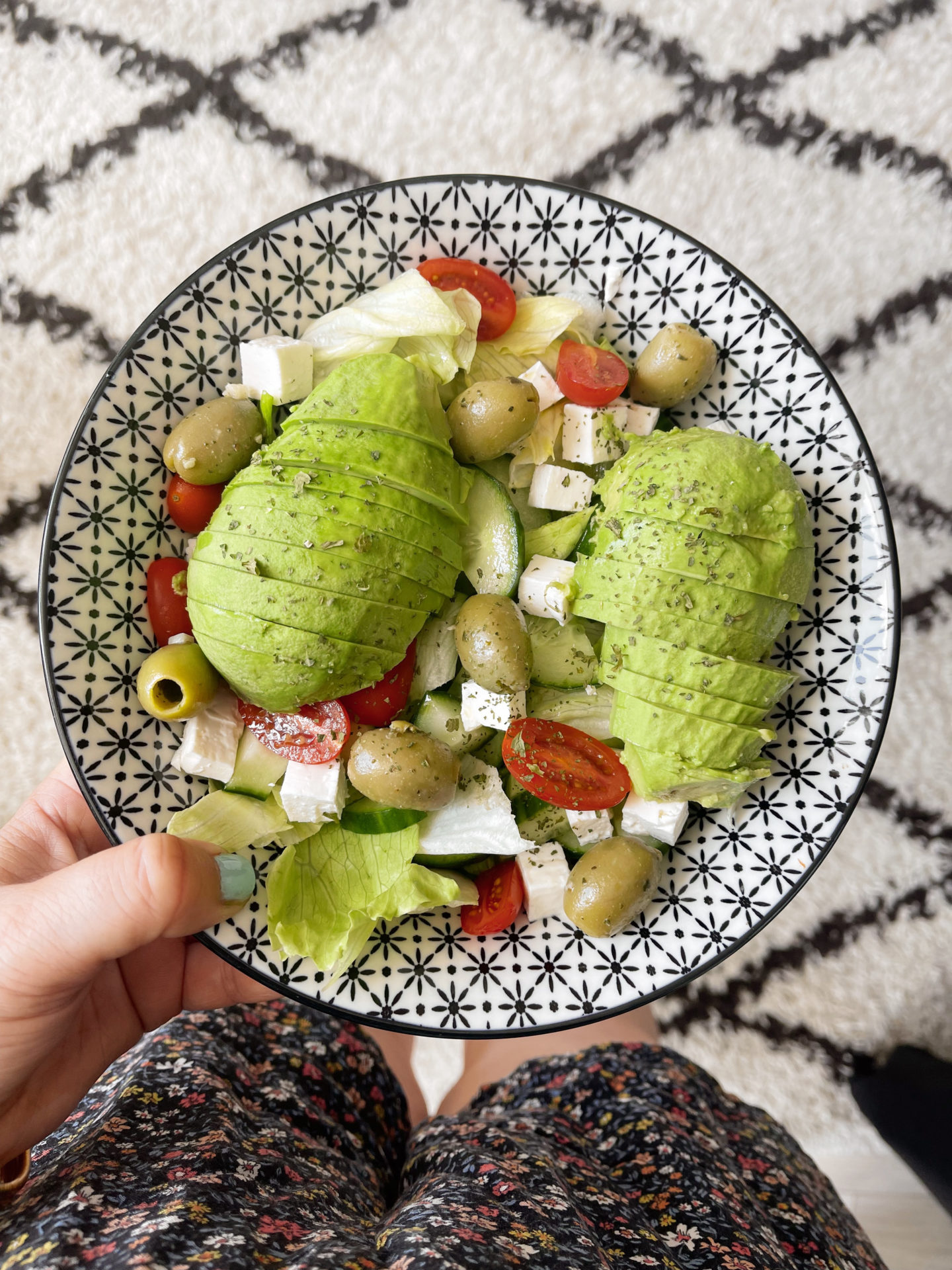 - Salade de crudités & fêta : tomates, avocat, concombre, olives (midi)