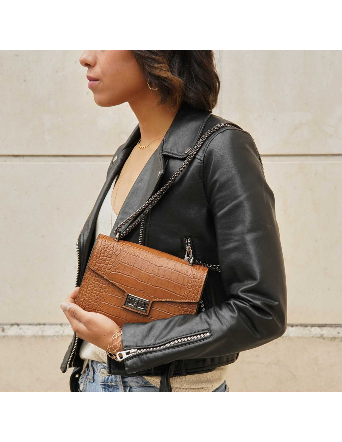 Le sac bandoulière en cuir façon croco Lizmore – 59,90€