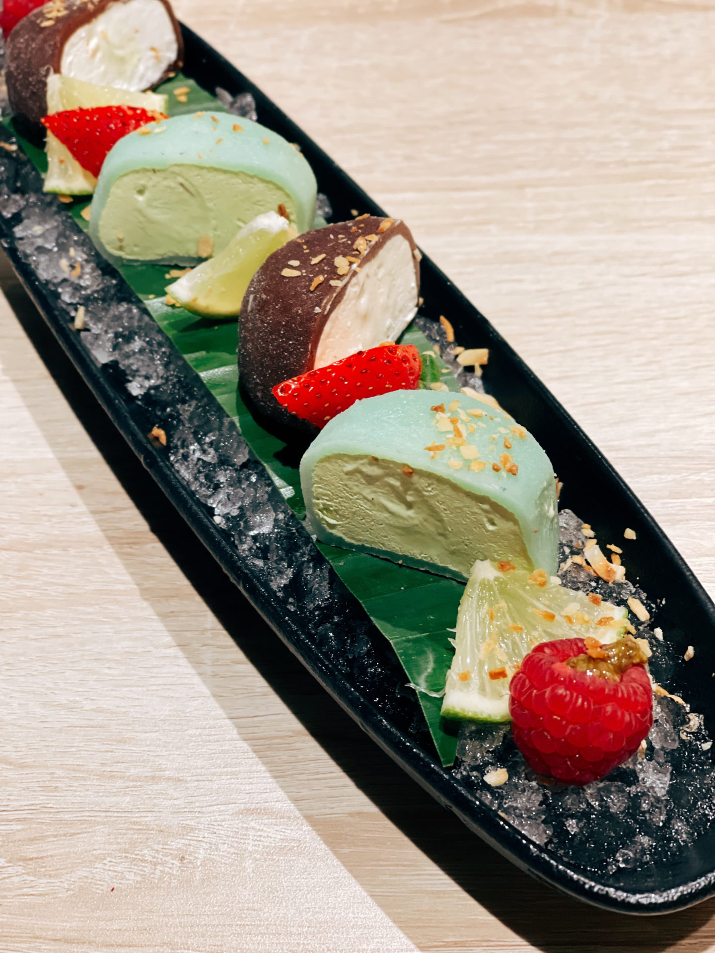 Pour terminer le repas sur une note douce et sucrée, nous avons partagé des mochis glacés. Autant vous dire qu’avec tout cela, nous n’avions plus faim en sortant de table !