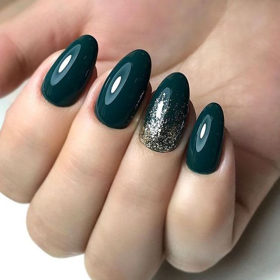 Façon vert émeraude foncé ou vert forêt, cette teinte pare vos ongles de façon chic et moins gothique qu’un noir.