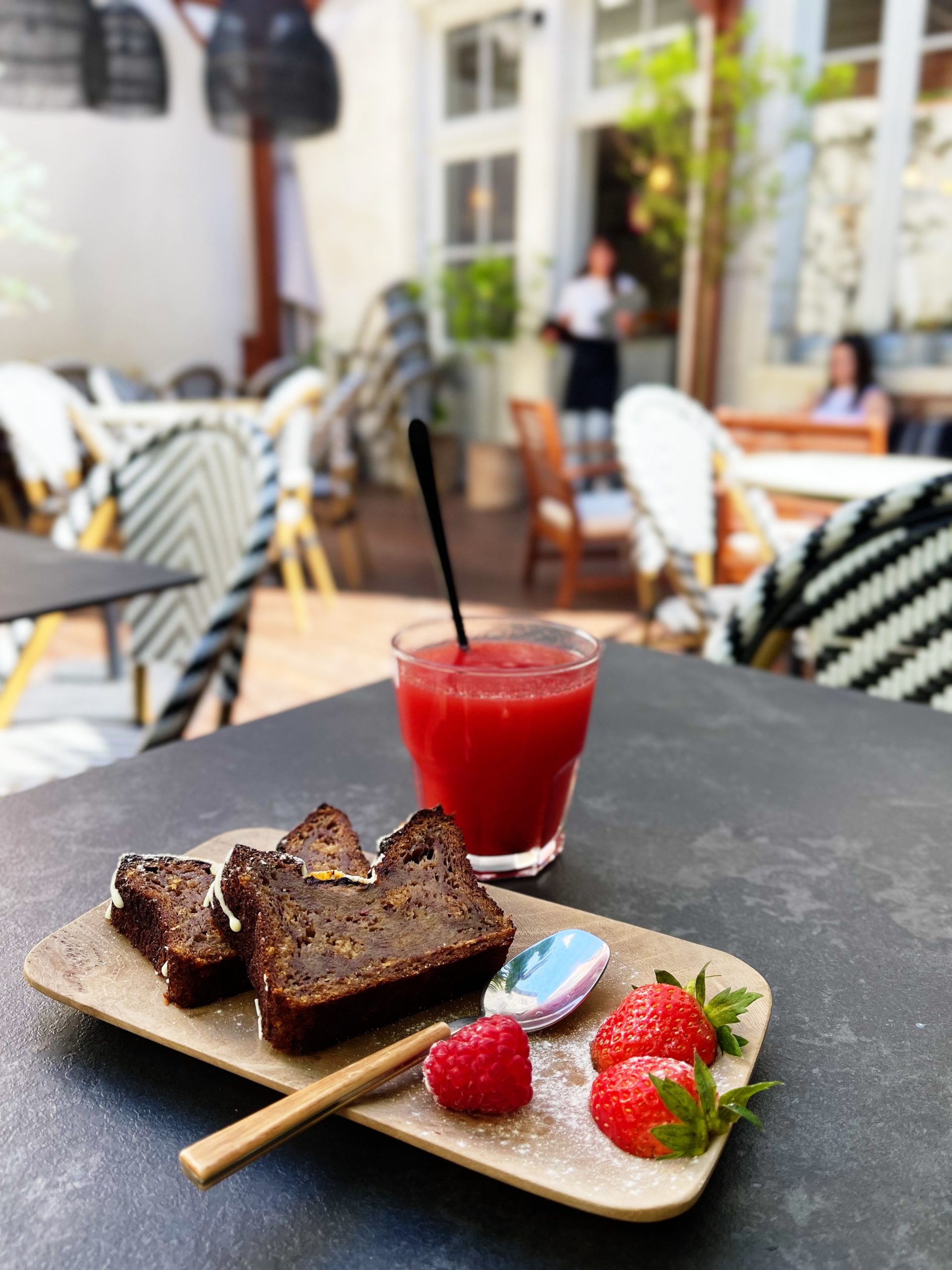 - Petit déjeuner : Tartine de Saint-Môret, blanc de dinde et infusion