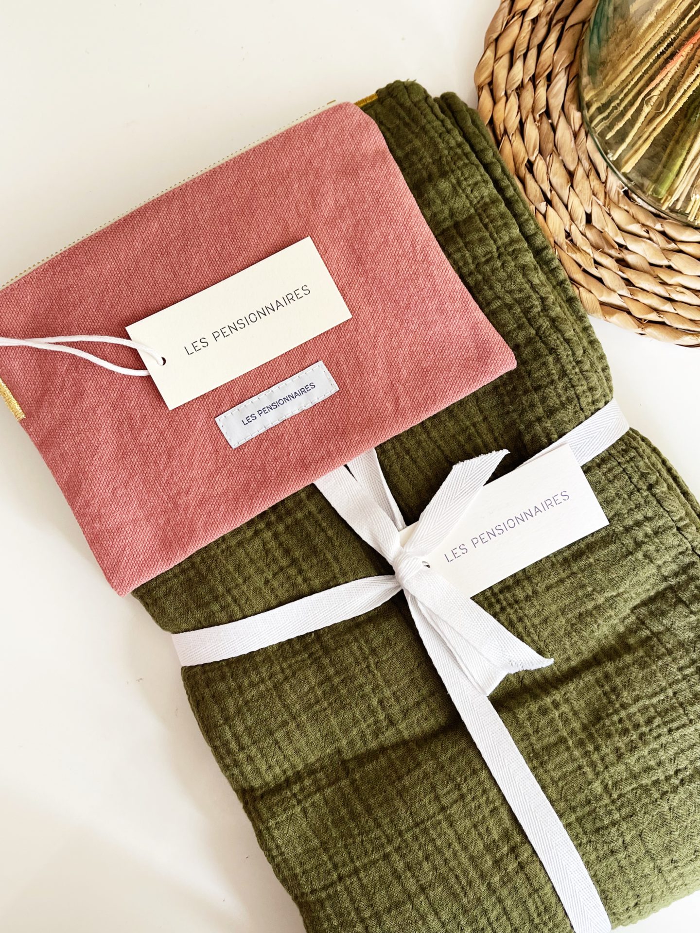 La marque Les Pensionnaires est établie à Lyon. Cette toute nouvelle marque propose du linge de maison (plaids, linge de lit, torchons, coussins, nappes…) mais aussi des accessoires comme des pochettes, des sacs, des trousses… Le tout réalisé dans des matières de qualité, voire haut-de-gamme.