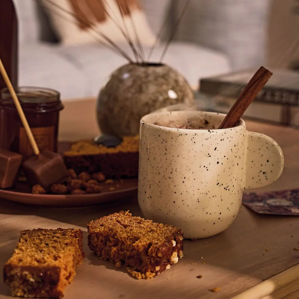 Depuis quelques saisons, la vaisselle en grès cérame est très tendance. Une bonne idée si vous aimez les tasses originales et solides. J’aime beaucoup ce modèle tacheté, idéal pour boire un bon latte.