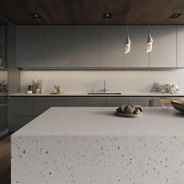 Le plan de travail en quartz était très tendance dans les années 80. Il reste très apprécié des personnes qui veulent un plan de travail chic, avec une finition brillante ou satinée.