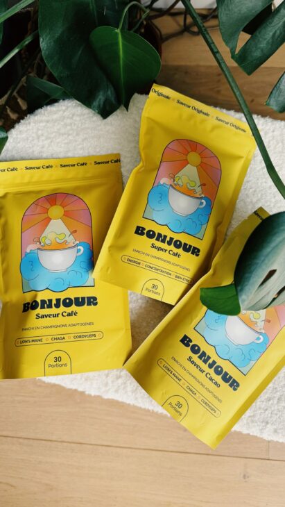On retrouve d’ailleurs le Lion’s Mane et le Cordyceps dans la composition des boissons Bonjour Drink. Chaque recette contient 2200mg d’extraits champignons adaptogènes pour garantir une efficacité optimale. Comme l’indique la marque sur son site internet, « Grâce à une technique d’extraction et aux 30% de polysaccharides, les extraits présents dans chaque tasse garantissent une efficacité optimale. »