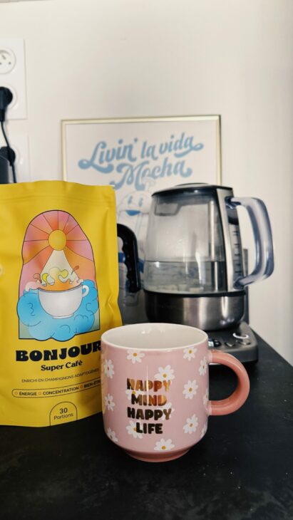 Ces derniers mois, j’ai cherché plusieurs solutions pour diminuer mon anxiété. J’ai en effet remarqué qu’en consommant un café de bon matin, souvent à jeun, mon anxiété était plus présente. J’ai donc petit à petit remplacé mon café du matin par un matcha latte, mais je dois avouer que le manque de caféine se faisait parfois sentir… Et puis, j’ai eu l’opportunité de tester Bonjour, l’alternative au café 100% naturelle et sans sucres, alliant les bienfaits de 3 champignons adaptogènes, de l’orge torréfiée et du cacao.