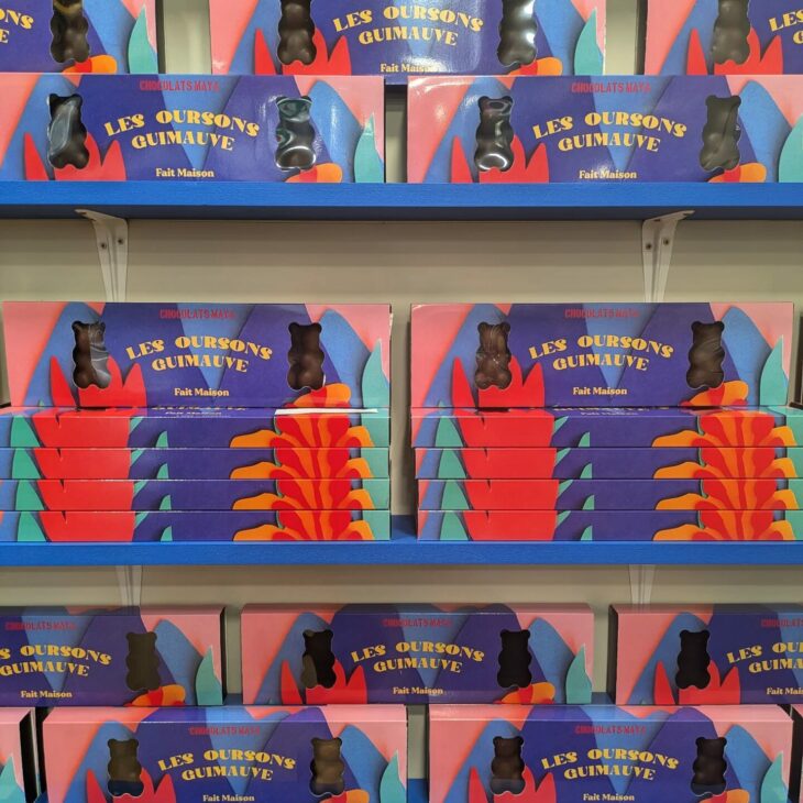 La boutique a été rénovée début 2025 et affiche un nouveau look, un nouveau logo, pour coller encore plus au caractère pétillant de Sandrine. Certains packaging ont d’ailleurs été revus, comme celui des oursons chocolat-guimauve : dur dur d’y résister !