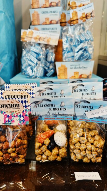 Parmi les autres spécialités rochelaises, retrouvez également en boutique les oeufs de mouette, les moules en chocolat ou bien encore les crevettes.