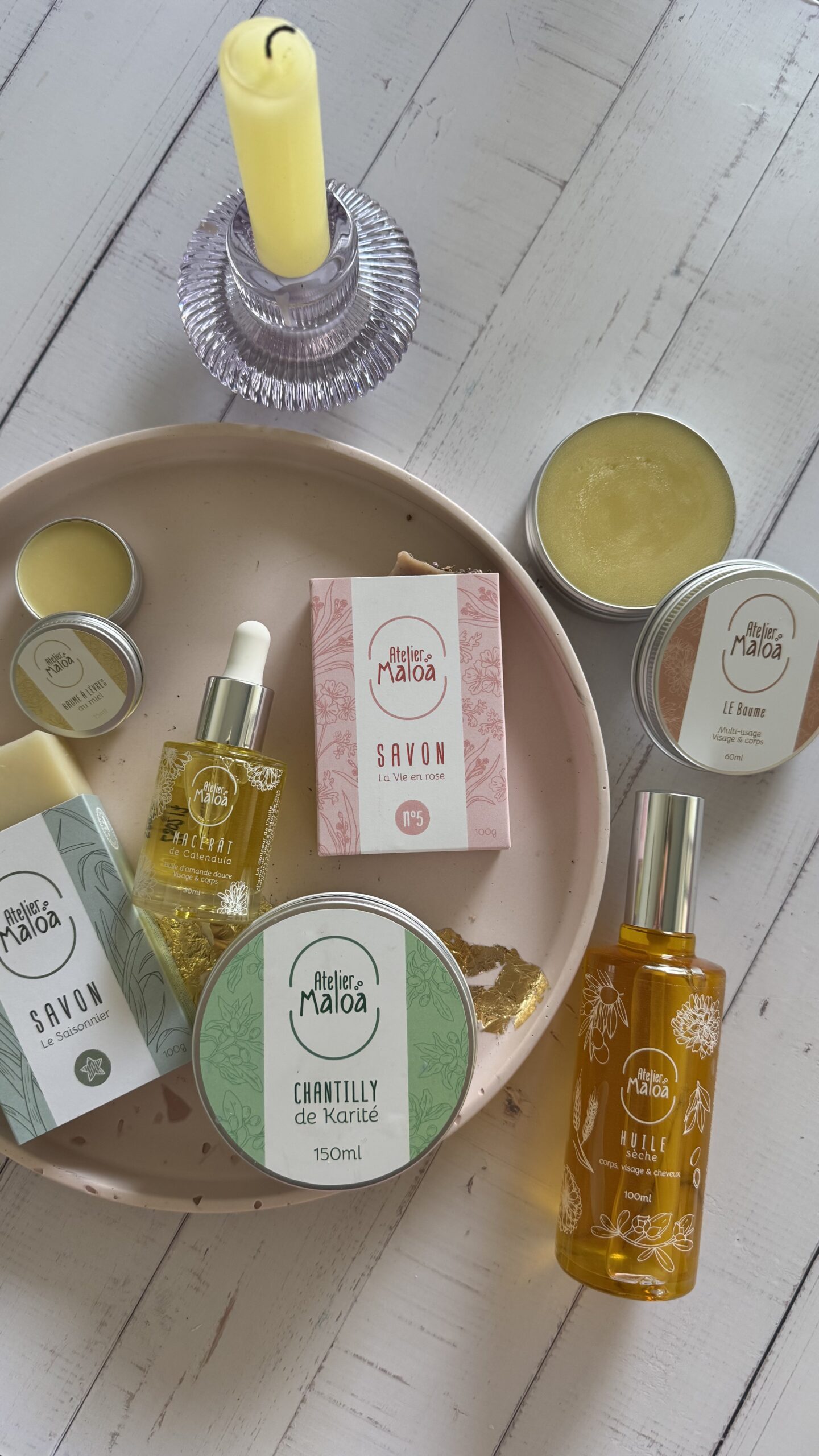 La gamme de cosmétiques naturels Atelier Maloa contient :