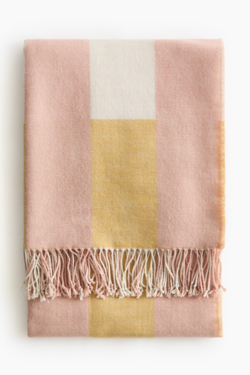 Dans cette nouvelle collection H&M Home Printemps Eté 2026, le rose et le jaune sont deux couleurs omniprésentes. Deux couleurs qui fonctionnent très bien ensemble ! Si vous avez envie d’accessoiriser votre canapé avec un plaid tout doux, ce modèle à moins de 30€ fait parfaitement le boulot.